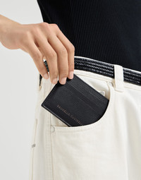 Refined materials define the style of this grained calfskin card case. The special leather highlights the season’s colors and the slight irregularities that give the accessory a three-dimensional effect. Equipped with several card slots, the card case is completed with an iconic Brunello Cucinelli logo. MATERIALS Manufacturing of the calfskin gives the texture a rich and even grain with a smooth and semi-polished appearance. DETAILS 6 slots for cards and business cards Leather lining Accessory is approx. 10 cm (3.94") long, 8.5 cm (3.35") high and 0.3 cm (0.12") wide 100% REAL LEATHER