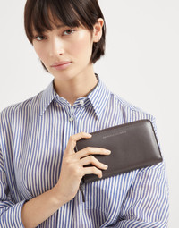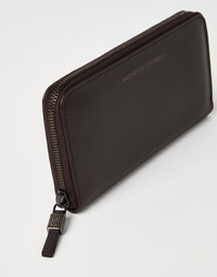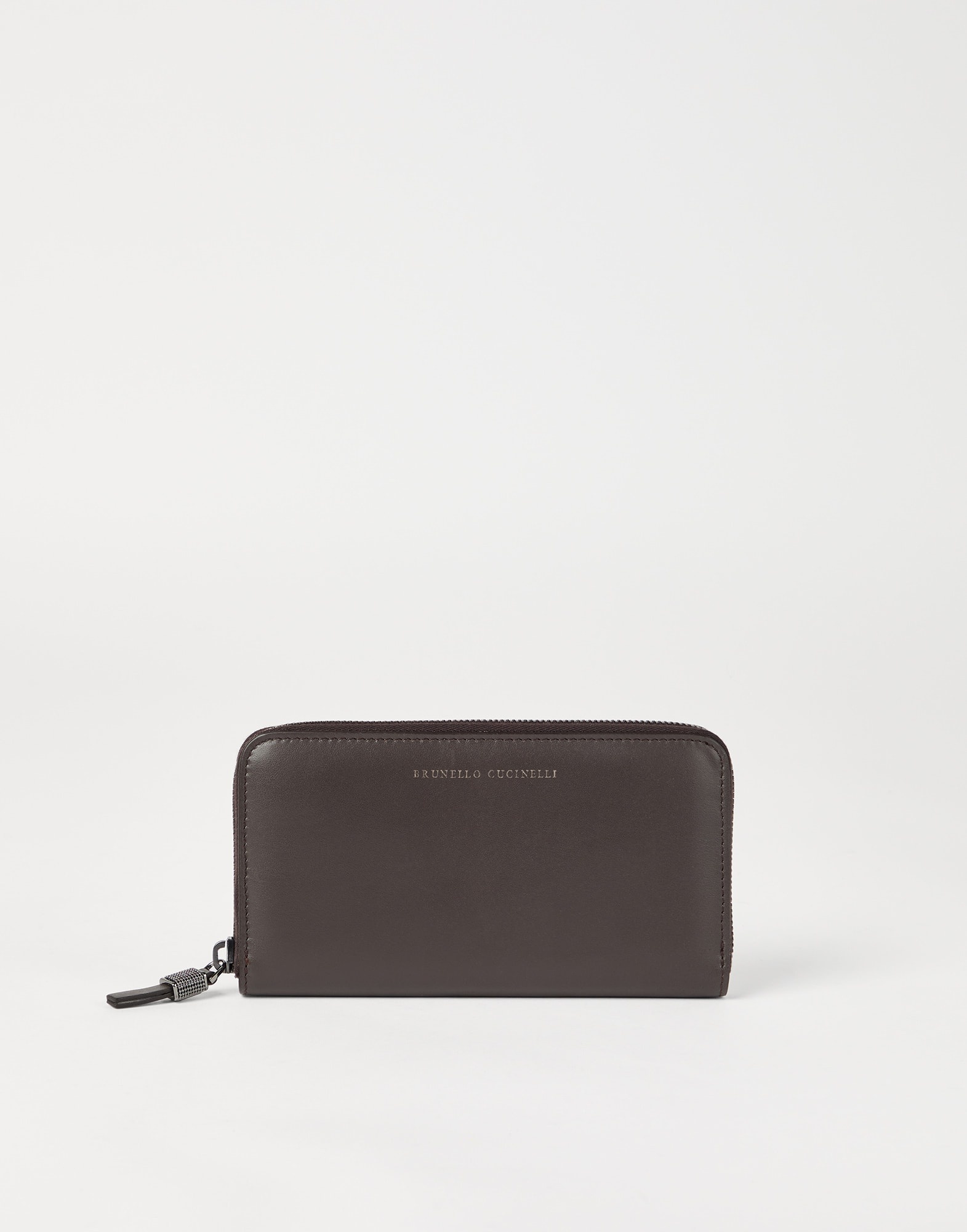 Fine materials and iconic details define the style of the grained calfskin wallet. The special material highlights the slight irregularities that give the accessory a subtle three-dimensional effect. Equipped with several card and ticket compartments, two inside pockets and a zipper coin purse, the wallet is complemented by the iconic monili embroidery that highlights the zipper pull with a sparkling touch, in pure Brunello Cucinelli style. MATERIALS Manufacturing of the calfskin gives the texture a rich and even grain with a smooth and semi-polished appearance. DETAILS Zip closure Coin purse with zip closure 8 slots for cards and business cards Two interior pockets Leather lining Nickel-free monili decoration Accessory is approx. 19 cm (7.48") long, 11 cm (4.33") high, and 2 cm (0.79") wide 100% REAL LEATHER
