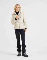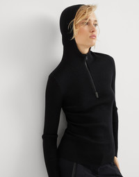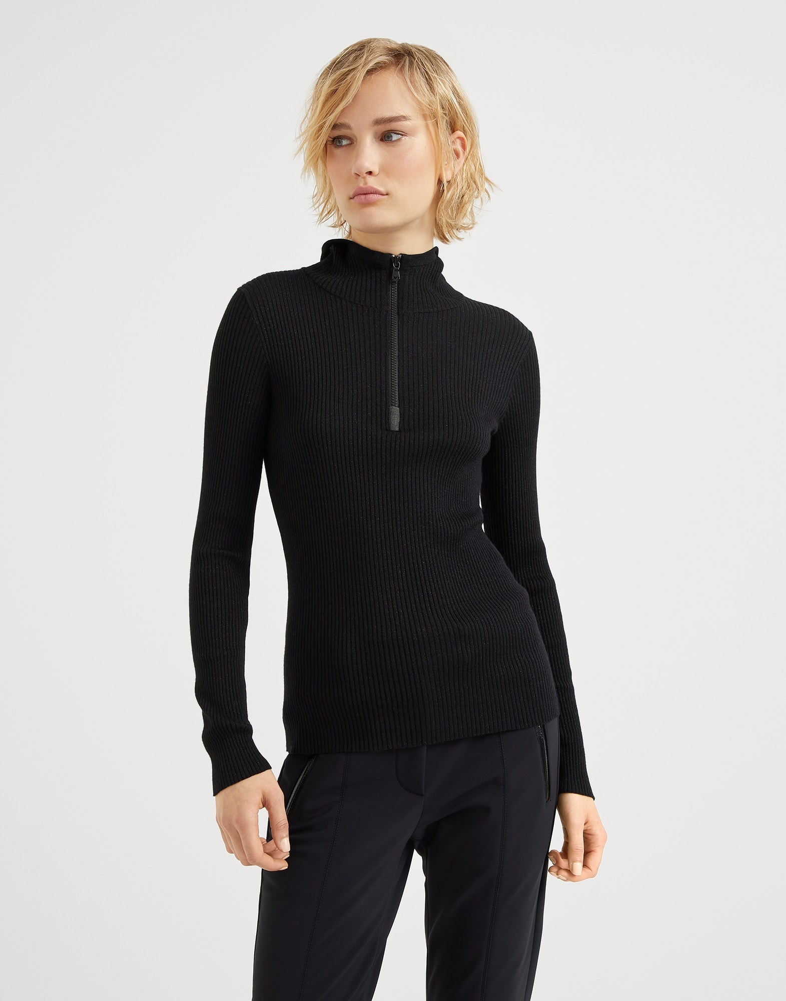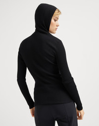 The excellence of Brunello Cucinelli materials elevates the essential feel of this lightweight cashmere and silk Sparkling yarn sweater. Timeless rib knitting combines the refined qualities of the natural fibers with a lame thread, spreading delicate metallic reflections throughout the garment’s surface. The silhouette offers comfortable, fitted lines, while the hood and zipper closure introduce functional details. The shiny monili embroidery completes the look of the sweater with a feminine sparkle. MATERIALS Cashmere and silk fibers are manufactured together with a fine lame thread to enrich the texture with delicate metallic reflections. The presence of a synthetic fiber provides added comfort. DETAILS Zip opening Hood Regular shoulder Regular sleeve Special workmanship Rib knit Nickel-free monili decoration 51% CASHMERE, 22% SILK, 20% NYLON, 7% POLYESTER