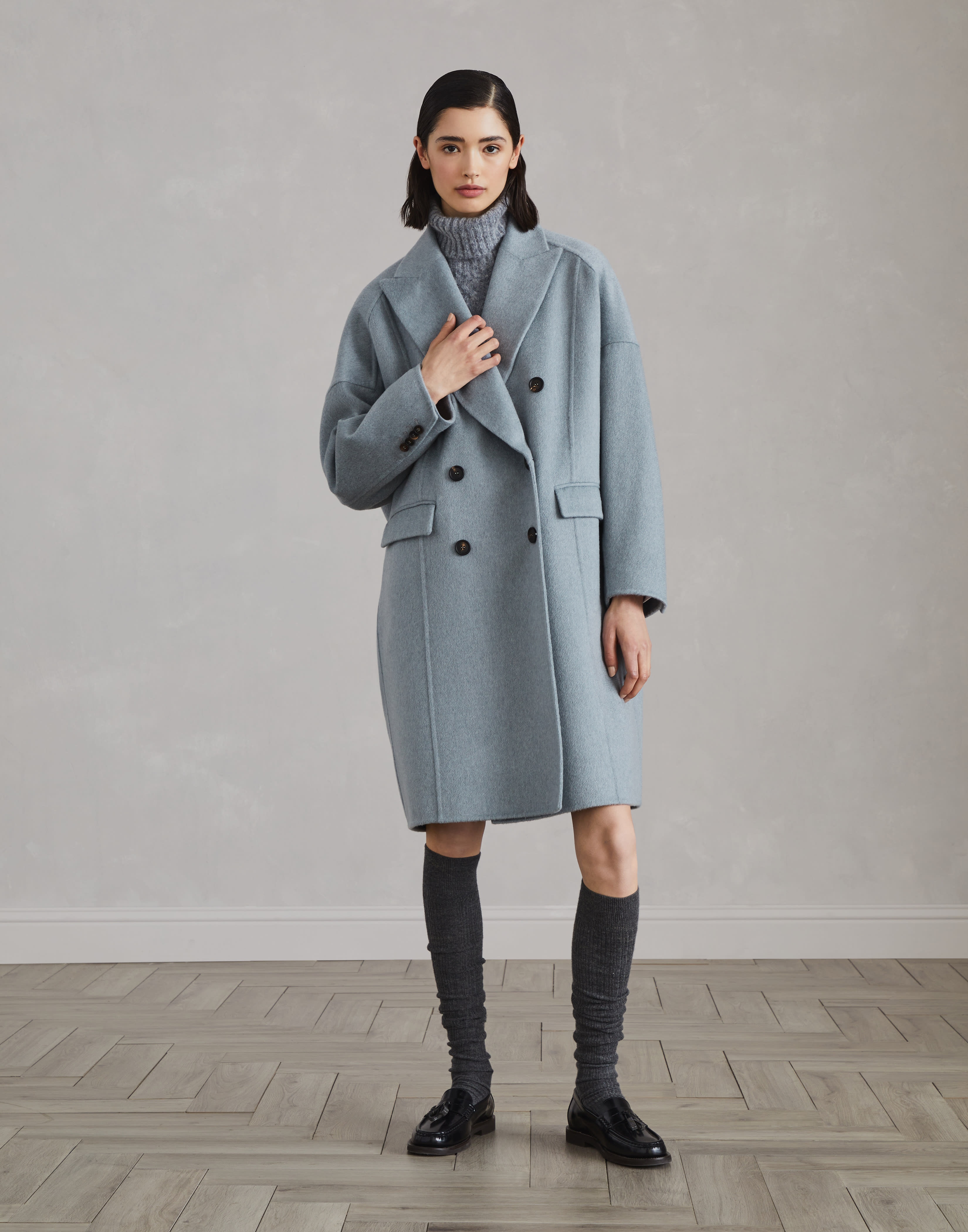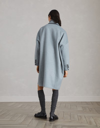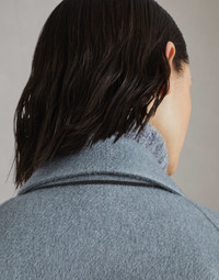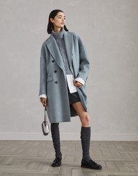 Refined fabrics enhance the elegant, cozy style of this double coat. The plush cashmere beaver is crafted with two layers of fabric bonded together to create a garment with a compact texture that is extraordinarily soft to wear. The oversized fit is emphasized by the pronounced lapels, double-breasted closure and relaxed sleeves. The precious monili insert adds a delicate sparkling detail. MATERIALS The excellence of cashmere is combined with a special process: two thin layers of cashmere fabric are manufactured together and, at the same time, connected by two cashmere threads using a complex manual process paired with machine work. The result is a warm, compact and cozy fabric that showcases the same appearance on both sides. DETAILS Horn button closure Hand pockets Cuffs have four horn buttons Nickel-free monili decoration 100% CASHMERE