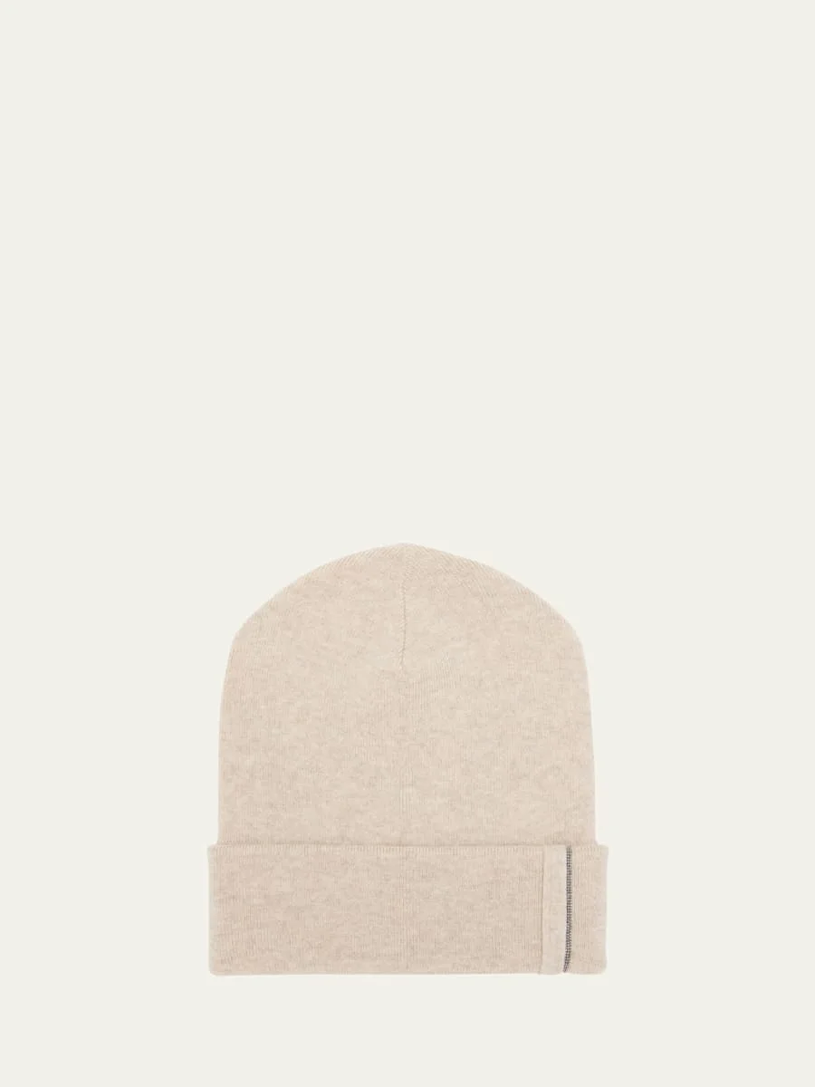 Brunello Cucinelli cashmere ribbed knit beanie hat featuring monili detail Wide foldover cuff Cashmere Made in Italy