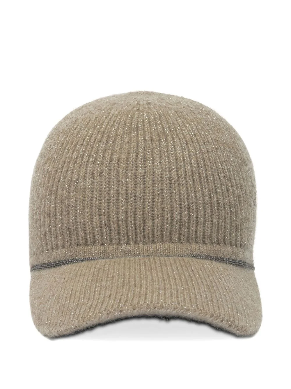 ribbed baseball cap Highlights - Beige - English-ribbed knit - Beaded trim - Curved peak Made in Italy Composition Cashmere 52%, Polyamide 35%, Viscose 10%, Polyester 3%