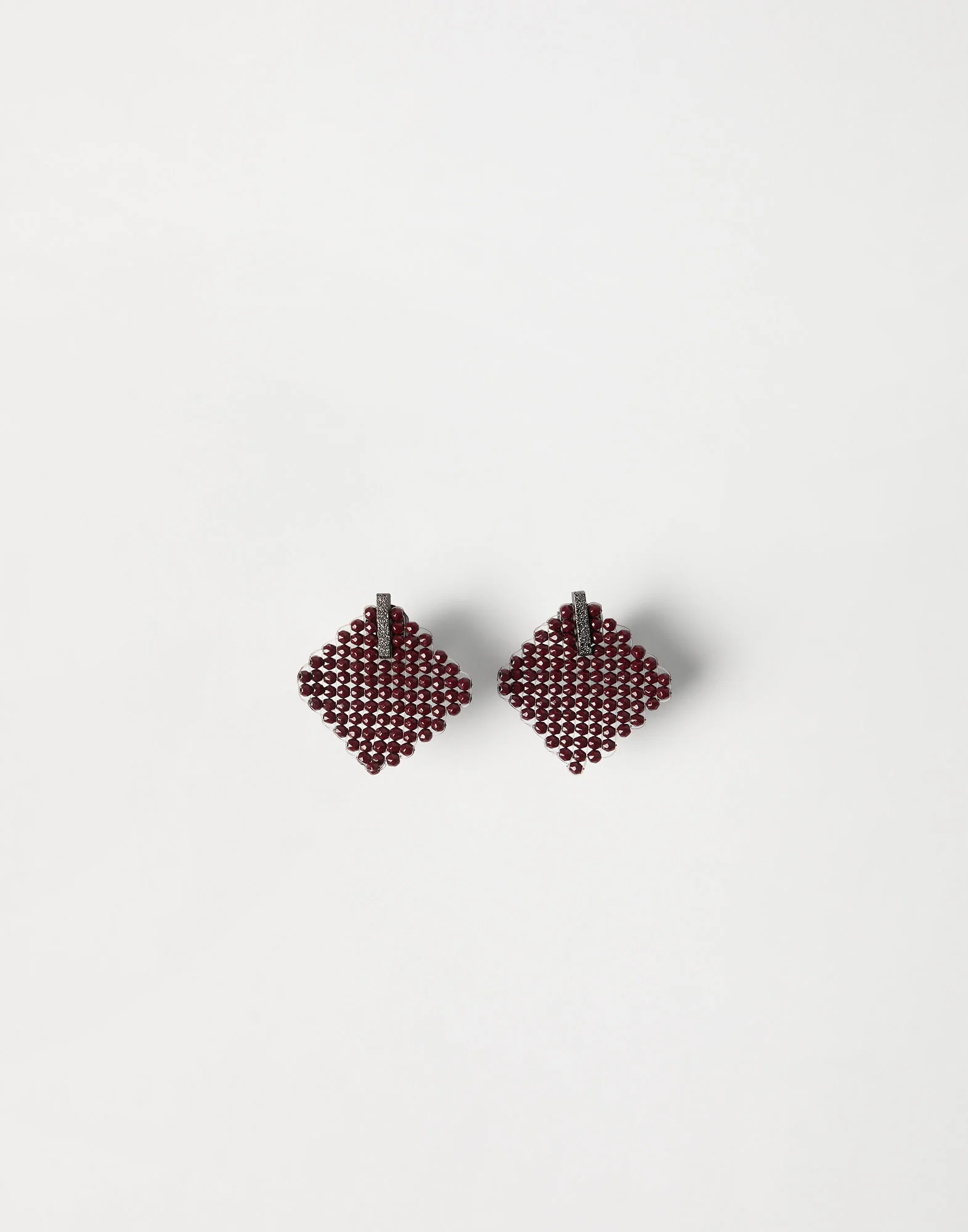 Brunello Cucinelli’s refined, essential elegance is conveyed in the style of these Hematite and Sterling Silver earrings. The individual beads that make up the design feature a special faceted sparkling finish that enhances the jewelry’s brilliance. The accessory is completed with a butterfly closure. MATERIALS The faceted cut of the Hematite and 925 Sterling Silver beads enhances the sparkling reflections of this bracelet, enriched with an artisan technique that engraves the metal to accentuate the surface’s shiny effect. All of the metal components are coated with precious materials that completely replace Nickel, enriching the excellence of every single detail. DETAILS Friction fastening The length of the earrings is approximately 3 cm (1.18") Nickel-free monili decoration 100%