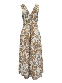 Herbarium-print midi dress Highlights - Light brown - Concealed rear zip fastening - V-neck - Sleeveless - Seam detailing Made in Italy Composition Cotton 100%
