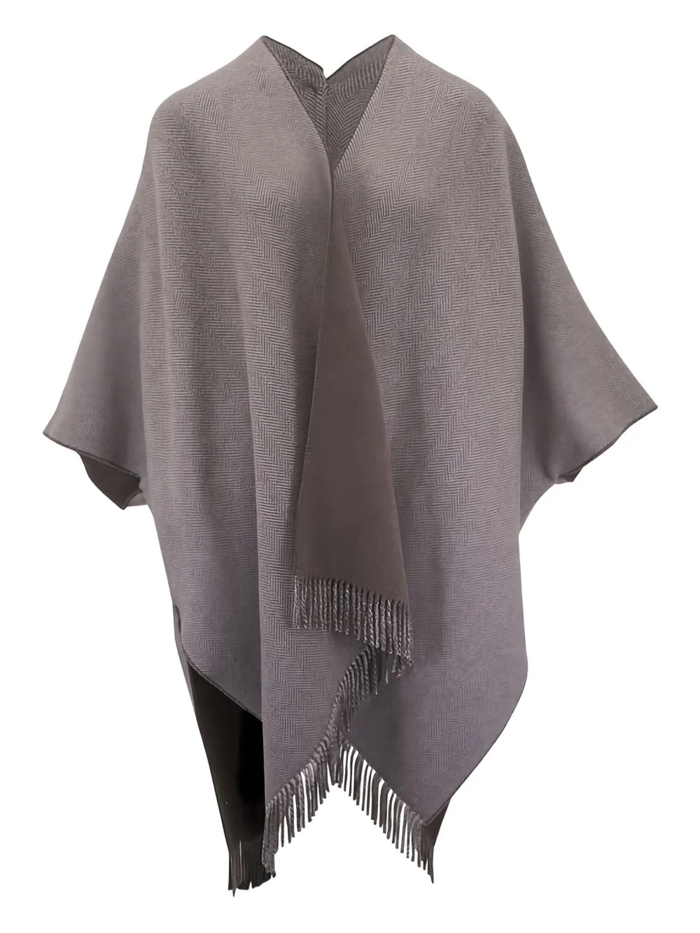 herringbone-pattern fringed poncho Highlights - Brown - Herringbone pattern - Fringed edges - Reversible Made in Italy Composition Cashmere 93%, Viscose 5%, Polyester 2% Washing instructions Dry Clean Only