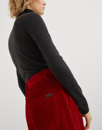 Informal proportions and precious details come together perfectly in these Loose trousers. The ribbing enhances the cotton corduroy with its three-dimensional texture, giving the garment a timeless appeal. The silhouette showcases very relaxed, casual lines typical of the Loose style. The shiny monili embroidery adds an elegant sparkle with a feminine feel. MATERIALS Pure cotton corduroy is characterized by a soft and velvety texture. The use of the natural fiber gives the garment a balanced weight. DETAILS Zip closure with metal hook and backing button Front pockets Pleat Back pockets Unlined Nickel-free monili decoration 100% COTTON