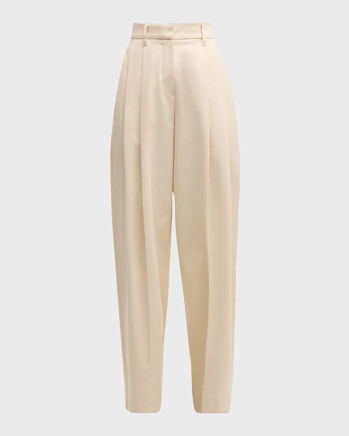 High-Rise Pleated Cotton-Twill Straight-Leg Trousers