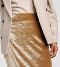Product Details - Material: 82% viscose, 18% silk - Care instructions: dry clean - Made in Italy - Designer color name: Cammello/Argento - Lining: 74% acetate, 26% silk - Closure: zipped back, invisible zipper - Item number: P00873314 Size & Fit - True to size - Non-stretchy fabric - slit length 72cm-28.5" - The model seen in the picture is 178cm-5'10" and wearing a size IT 40