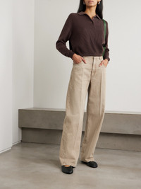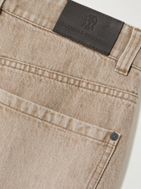 Brunello Cucinelli's jeans are made from light-brown denim that's faded and whiskered for a worn-in feel. In a classic five-pocket construction, they have a high-rise and fall to relaxed, wide legs. Wear yours with a tucked-in tee or cardigan and ballet flats.
