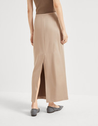 This Long Column skirt pairs refined materials with a very feminine appearance. The elongated, essential silhouette is enhanced by the fluidity of cady satin, while the side zipper design completes the comfort of the garment. MATERIALS Shiny and silky, the cady satin combines acetate and viscose fibers to offer a compact texture that remains fluid and very comfortable at the same time. DETAILS Side zip closure Silk-blend crepe lining Single back vent 61% ACETATE, 39% VISCOSE