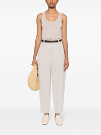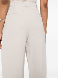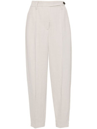 high-waist tapered trousers Highlights - Light beige - Twill weave - Belt loops - Exposed-seam detailing - Pressed crease - Two diagonal pockets to the sides - Two rear faux pockets - Tapered leg - Unlined - Concealed front button, hook and zip fastening Made in Italy Composition Lining: Polyester 36%, Acetate 32%, Cupro 32% Outer: Viscose 81%, Linen/Flax 19% SIZE & FIT Model measurements Height 5 ft 10 in(1.78 m) Bust/Chest 32.67 in(83 cm) Hips 35.43 in(90 cm) Waist 23.22 in(59 cm) FittingInformation Designed for a tapered fit, these trousers allow for a close fit at the waist and a loose unrestricted fit over the leg with a closer fit towards the ankle Made from a midweight non-stretch fabric This piece fits true to size – take your usual size Washing instructions Dry Clean Only