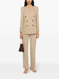 high-waist tapered trousers Highlights - Light beige - Cotton - Interlock twill weave - Signature monili chain detail - Pressed crease - High waist - Belt loops - Concealed fly and button fastening - Two side slit pockets - Two rear welt pockets - Tapered leg Made in Italy Composition Outer: Brass 100%, Cotton 100% Lining: Cotton 100%, Polyester 36%, Acetate 32%, Cupro 32% SIZE & FIT Model measurements Height 5 ft 10 in(1.78 m) Bust/Chest 31.49 in(80 cm) Hips 35.03 in(89 cm) Waist 23.62 in(60 cm) FittingInformation Designed with a cigarette cut, these trousers allow for a close fit at the waist and offer an unrestricted fit through to the ankle Made from a midweight non-stretch fabric This piece fits true to size – take your usual size