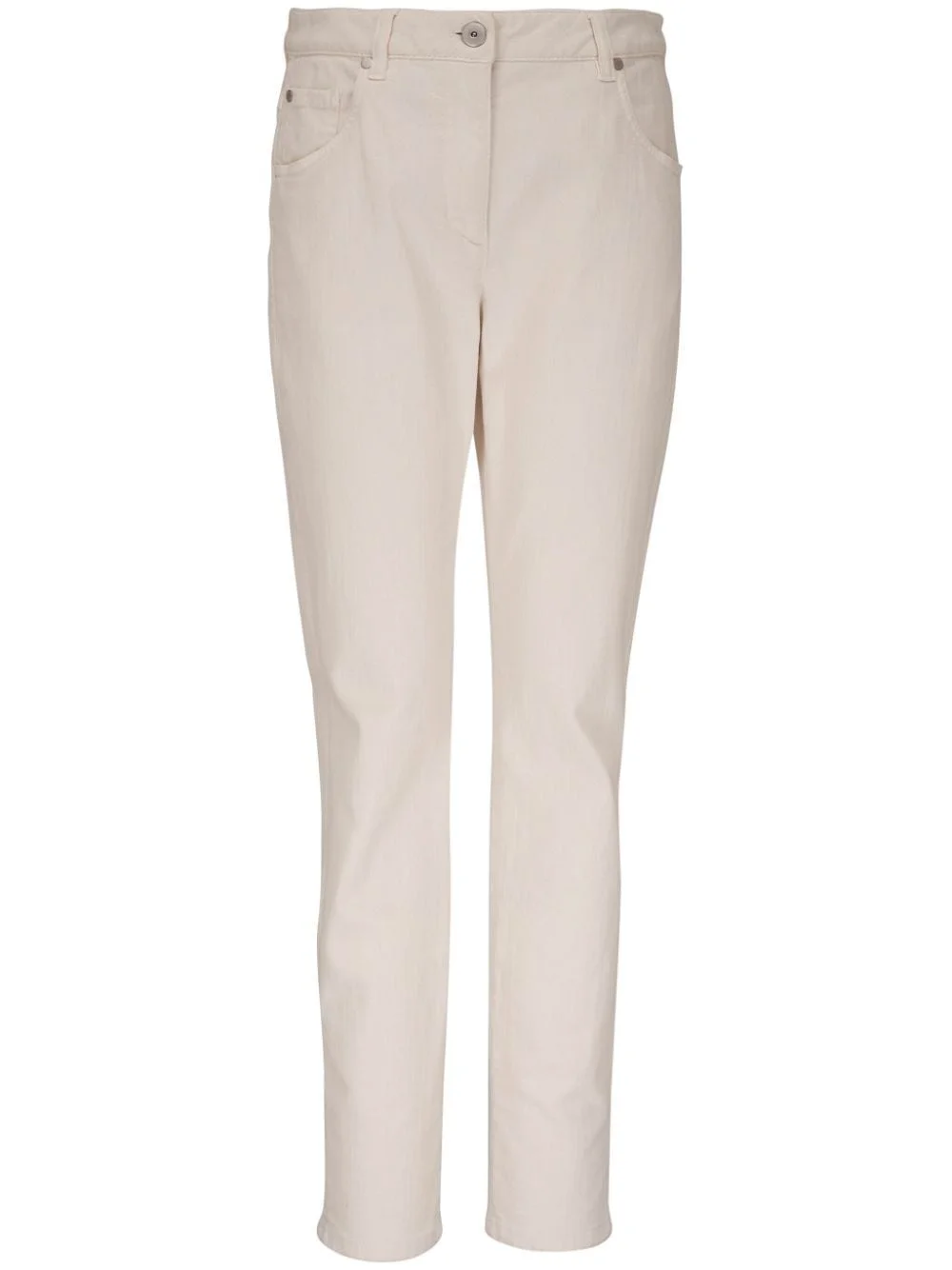 Monili-detail slim-cut trousers Highlights - Light beige - Stretch-cotton - Signature monili chain detail - Rivet detailing - High-waisted - Concealed fly and button fastening - Belt loops - Slim cut - Classic five pockets Made in Italy Composition Cotton 96%, Elastane 4% Washing instructions Machine Wash