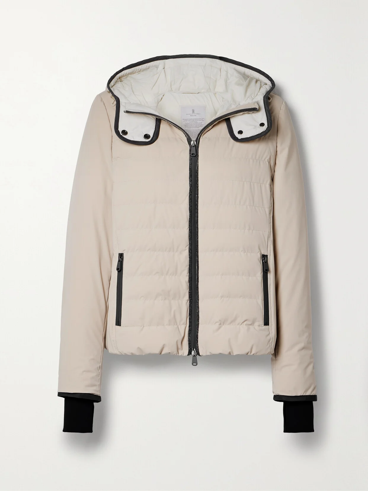 EXCLUSIVE AT NET-A-PORTER. Brunello Cucinelli's signature 'Monili' beads make their way into so many of the brand's designs - they punctuate the zip placket of this ski jacket. Cut from water-resistant shell, it's quilted for warmth and filled with insulating down. Snaps and toggles at the neck help block out the cold, while thumbholes at the cuffs keep the sleeves in place.