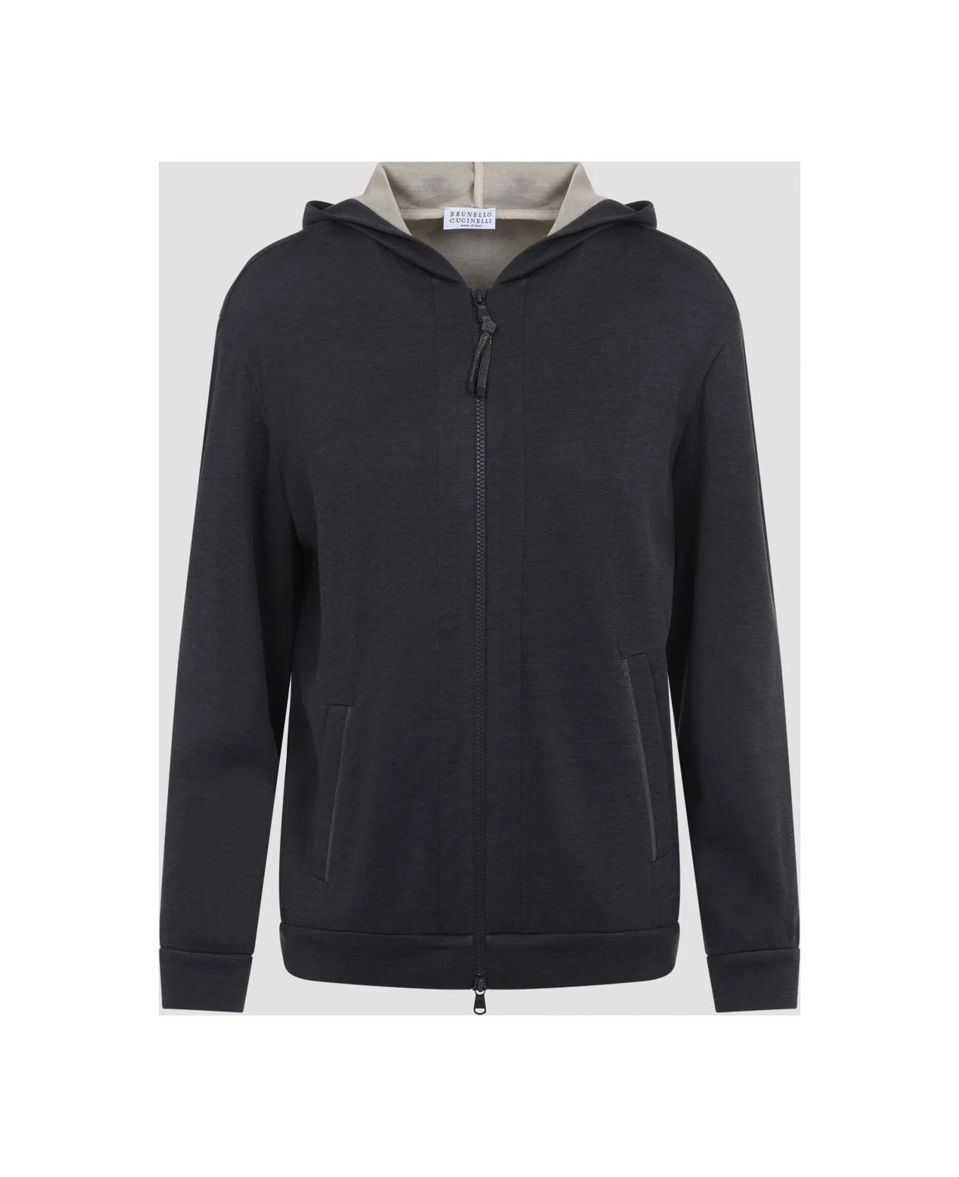 Brunello Cucinelli Carbone Cotton Sweatshirt. Carbone cotton blend, attached hood, long sleeves, front zipped fastening, side pockets with crystal embellishment, tonal stitching. Regular fit. Color: Carbone Model number: MD828SB806C9142