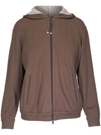 hooded cardigan Highlights - Animalier brown - Front zip fastening - Two side welt pockets - Slouchy hood - Long sleeves Made in United States Composition Cotton 67%, Silk 31%, Polyamide 2%