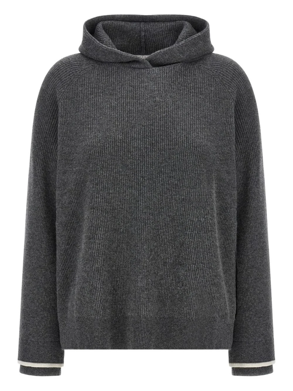 hooded ribbed sweater Highlights - Grey - Ribbed knit - Hooded neckline - Long sleeves - Double-layer flared cuffs Made in Italy Composition Virgin Wool 60%, Cashmere 30%, Silk 10% Washing instructions Read Manufacturer Guidelines