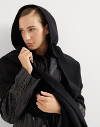 The excellence of refined fabrics enhances the essential style of this wool and cashmere knit scarf. Perfect for the winter, the precious yarn provides a comfortable feeling of softness. The fringe and hood complete the style with a casual touch. MATERIALS The combination of refined cashmere and wool fibers creates a very lightweight fabric with a very soft, compact hand. Designed for colder days, the style retains warmth and is very comfortable to wear. DETAILS Plain stitch Hem with fringe Scarf measures approx. 50 cm (19,69") x 240 cm (94,49") 59% WOOL, 41% CASHMERE