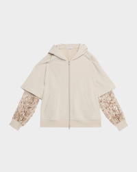 Hooded Zip Jacket with Sheer Sequined Raindrop Sleeves