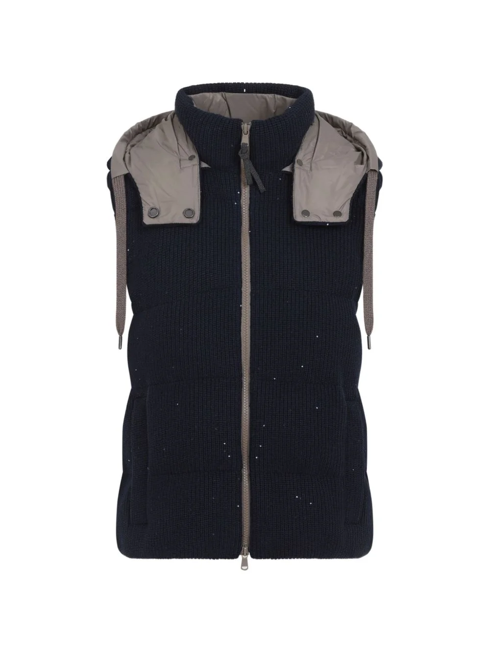 hooded zip vest Highlights - Blue - Hood - Zip fastening - Sleeveless - Embellishment Made in Italy Composition Cotton 100%, Polyester 100% Washing instructions Read Manufacturer Guidelines