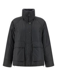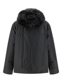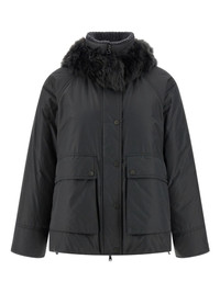 hoodie jacket Highlights - Grey - Removable fur trim - Ribbed high neck - Zip closure - Front snap buttons - Pockets - Drawstring hem Made in Italy Composition Outer: Cashmere 100%, Polyester 55%, Cotton 45% Lining: Nylon 100%, Goose Down 100% Washing instructions Read Manufacturer Guidelines