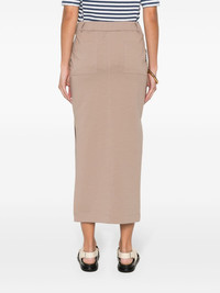 jersey midi skirt Highlights - Sepia brown - Cotton blend - Jersey texture - Belt loops - Two side slash pockets - Side slits - Rear elasticated waistband - Two rear patch pockets - Mid-length - Straight hem - Concealed front button, hook and zip fastening Made in Italy Composition Cotton 98%, Acetate 74%, Silk 26%, Elastane 2% SIZE & FIT Model measurements Height 5 ft 10 in(1.78 m) Bust/Chest 33.07 in(84 cm) Hips 35.82 in(91 cm) Waist 25.98 in(66 cm) FittingInformation This midi-length skirt is intended to be worn high on the waist The partially elasticated waistband offers increased movement and comfort at the waist Made from a midweight stretch fabric, this piece offers elasticity and flexibility when worn This piece fits true to size – take your usual size