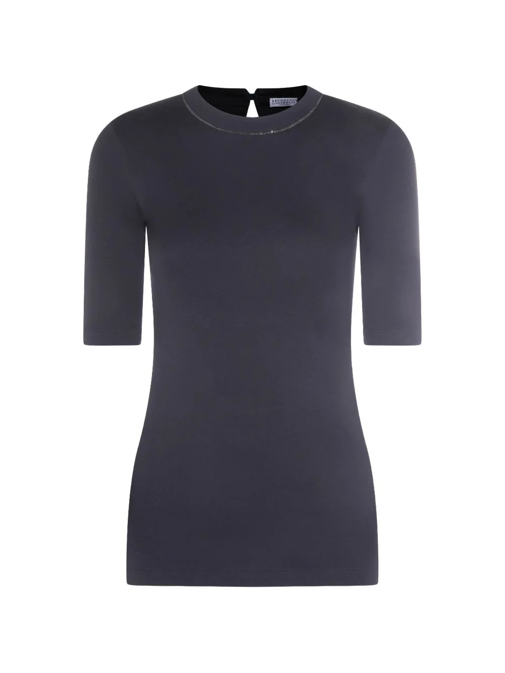 jewel crewneck top Highlights - Abyss grey - Cotton - Jewel trim - Short sleeves - Keyhole detail - Rear button fastening Made in Italy Composition Cotton 94%, Lycra 6% Washing instructions Read Manufacturer Guidelines