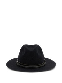 leather monili-band fedora hat Highlights - Black - Fedora model - Tubular leather band - Monile embellishment - Wide brim Made in Italy Composition Wool Felt 100%