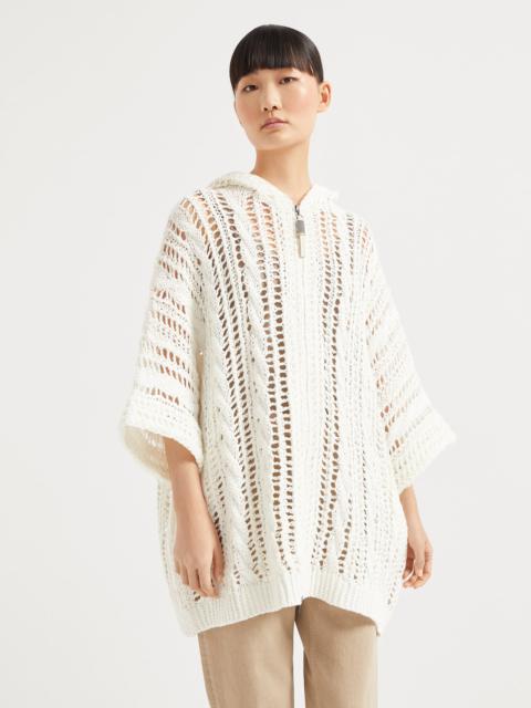 Made of natural jute and cotton fibers, this cardigan is defined by its refined Cable & Mesh knitting. The net-like stitch and traditional cable knitting come together to play with solid and empty spaces with a three-dimensional look. The garment features dropped shoulders and generous three-quarter sleeves, creating a relaxed silhouette completed by the sporty hood. A shiny monili embroidered insert enriches the zipper pull with a touch of feminine sparkle in true Brunello Cucinelli style. MATERIALS With a light, soft texture, the yarn is defined by the blend of jute and cotton fibers. A small percentage of a synthetic fiber guarantees the yarn’s durability and structure. DETAILS Two-way zip closure Hood Drop shoulder Wide sleeve Various knit stitches Nickel-free monili decoration 55% JUTE, 35% COTTON, 10% NYLON