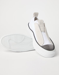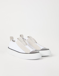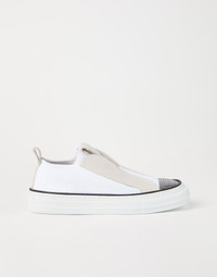 Precious details define the elegant, contemporary style of these new sneakers. The knit base is combined with soft suede inserts for a refined texture contrast, while the toe cap of the upper embroidered entirely in monili, adds a sophisticated sparkling note. The slip-on fit provides added comfort. MATERIALS The lightweight and velvety texture of the knit fabric is combined with soft suede inserts. The fabric lining and rubber bottom complement the footwear. DETAILS Detachable insole Rubber outsole TPU rubber tread Nickel-free monili decoration The heel height measures 4 cm 100% NYLON
