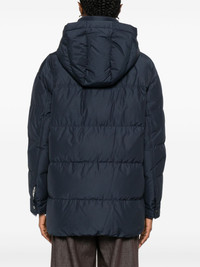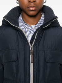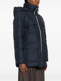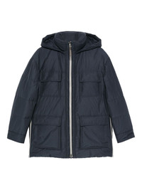 hooded flap-pocket jacket Highlights - Dark blue - Hooded neckline - Zip fastening - Flap pockets - Ribbed collar Made in Italy Composition Outer: Polyester 55%, Cotton 45% Lining: Nylon 100%, Goose Down 90%, Goose Feather 10% SIZE & FIT Model measurements Height 5 ft 8 in(1.73 m) Bust/Chest 29.92 in(76 cm) Hips 33.07 in(84 cm) Waist 23.22 in(59 cm) Washing instructions Read Manufacturer Guidelines