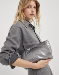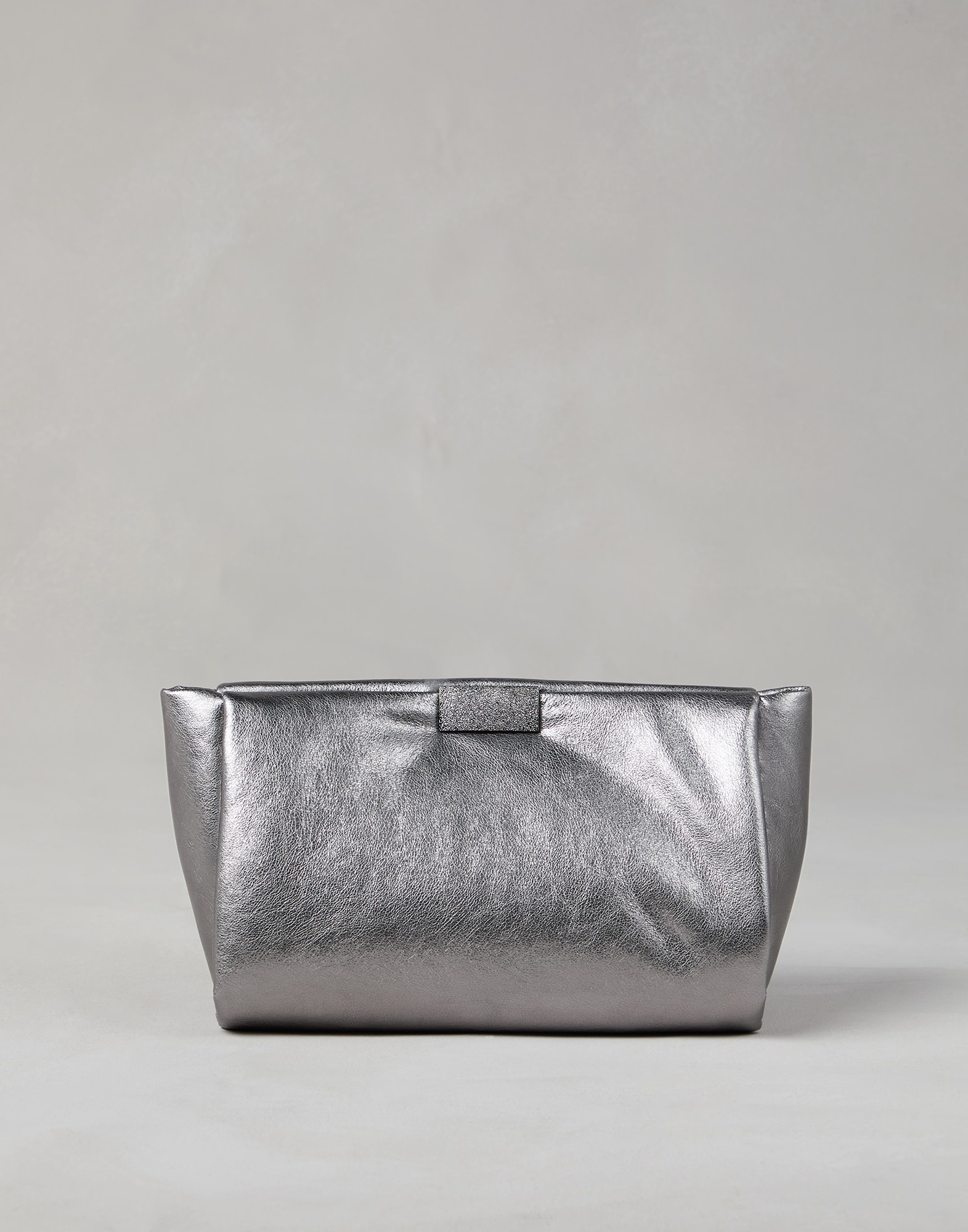 Lamé calfskin clutch bag with shimmering detail