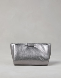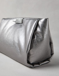 Refined materials and shiny embellishments define the elegant feel of this Wet Effect nappa clutch. The particular finish gives the leather a precious metallic effect that accentuates the bag’s soft, essential lines. The ornate closure is enriched with artisanal mirror polishing to add a sophisticated sparkle, enhancing the style. MATERIALS The refined leather is enriched with a special finish that gives the texture a shiny, metallic effect. DETAILS Magnetic snap closure Internal pocket with zip closure All metal parts are Nickel-free Bag is 31 cm (12,20") long, 12.5 cm (4,92") wide and 16 cm (6,30") high REAL LEATHER