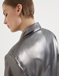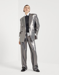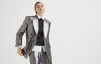 The elegant metallic effect of lamé thread gives a radiant sparkle to this silk twill blazer. The fabric reinterprets the garment’s tailored inspiration in a contemporary way, characterized by an oversized cut with a slightly pronounced shoulder and waist to highlight the silhouette. The embroidered monili detail behind the neck completes the garment with an elegant, feminine sparkle. MATERIALS The pure silk twill combines the characteristic diagonal weave structure with the natural fiber’s soft and smooth texture. This fabric is ultra lightweight and fluid to wear. DETAILS Horn button closure Silk-blend crêpe lining Chest pocket Hand pockets with flap Cuffs have four horn buttons Single back vent Nickel-free monili decoration 100% SILK