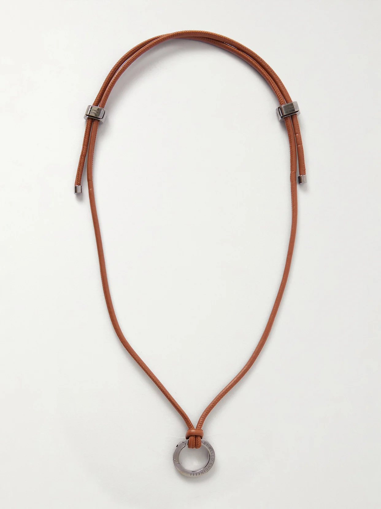 Brunello Cucinelli's necklace is an elegant yet practical warm-weather accessory. Crafted from knotted leather, it's punctuated with silver-tone hardware and a ring to attach sunglasses so they're never far from hand.