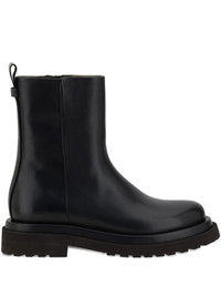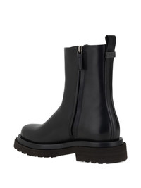 zip-detail block-heel boots Highlights - Black - Polished leather - Rear pull-tab - Side zip fastening - Round toe - Block heel Made in Italy Composition Sole: Rubber 100% Outer: Calf Leather 100% Lining: Fabric 100%