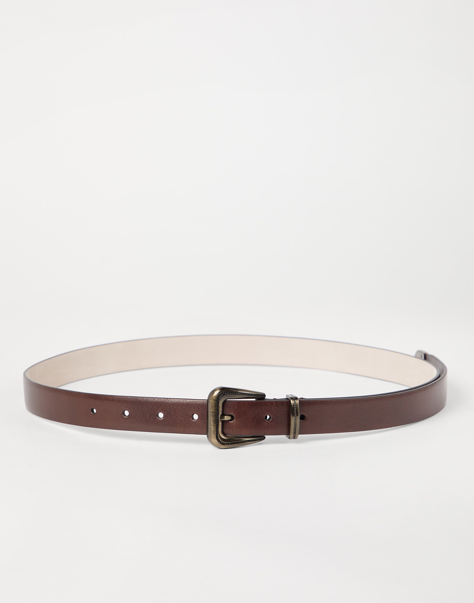 The smooth, semi-polished texture of vachetta enriches the essential style of this belt. The thin, minimal metal buckle completes the accessory with a shiny detail, while the shimmering monili embroideries on the loop and buckle introduce a feminine sparkle in true Brunello Cucinelli style. MATERIALS The vachetta leather showcases a smooth, semi-polished texture. All metal parts are coated with precious materials that completely replace Nickel, enriching the excellence of every single detail. DETAILS Belt height approx. 1.5 cm (0,59") All metal parts are Nickel-free Nickel-free monili decoration 100% REAL LEATHER