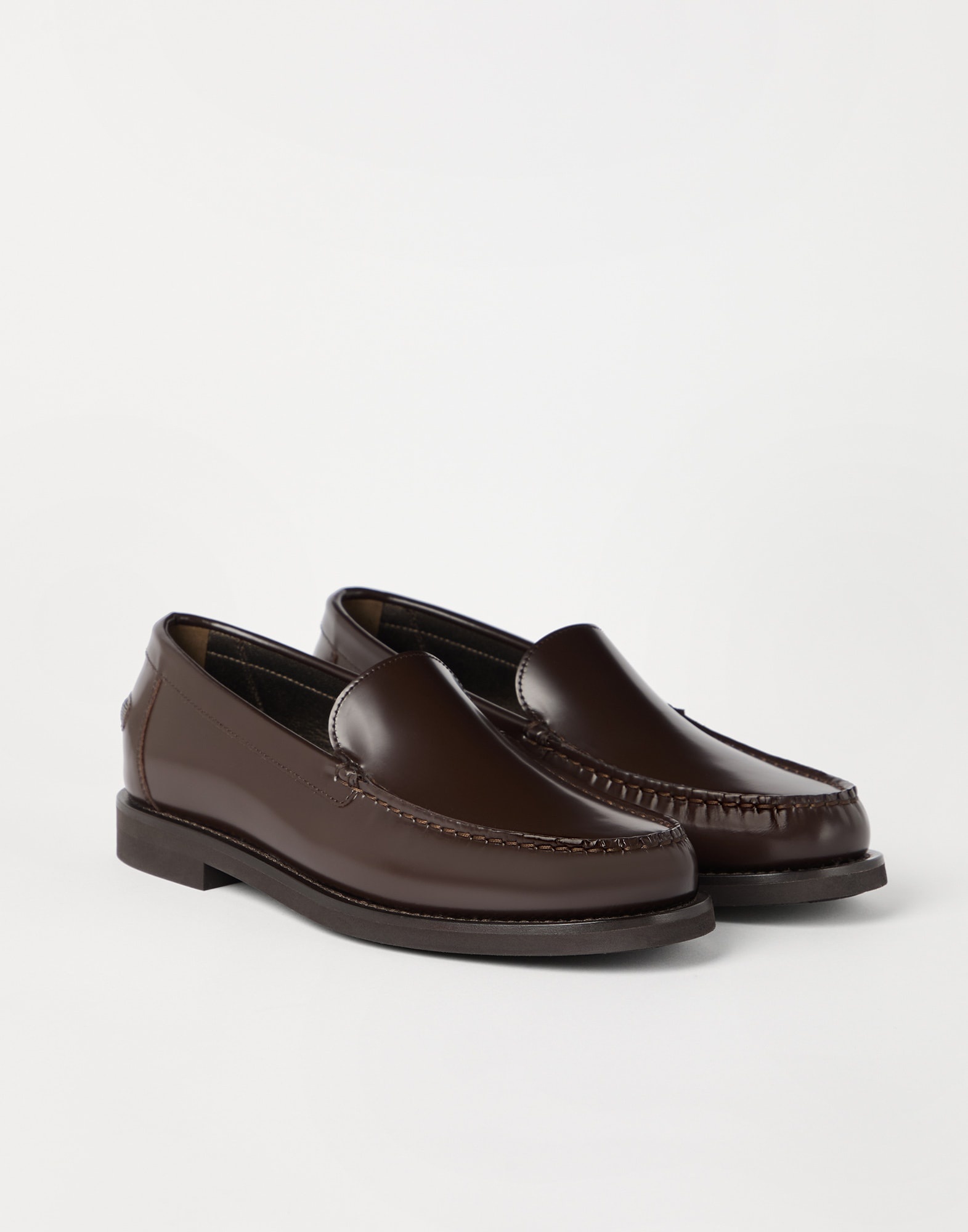 Refined materials and sparkling embellishments reinterpret the masculine feel of these Penny Loafers in an elegant, modern way. The luxurious leather’s even, polished look gives the footwear an essential, minimal feel. The precious monili detail adds a feminine, sparkling touch in true Brunello Cucinelli style. MATERIALS Calfskin leather showcases a smooth, soft and even texture. The surface’s slightly matte appearance brings out the colors of the season with an intense, rich effect. DETAILS Leather lining Sole in lightweight micro rubber Nickel-free monili decoration 100% REAL LEATHER