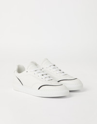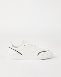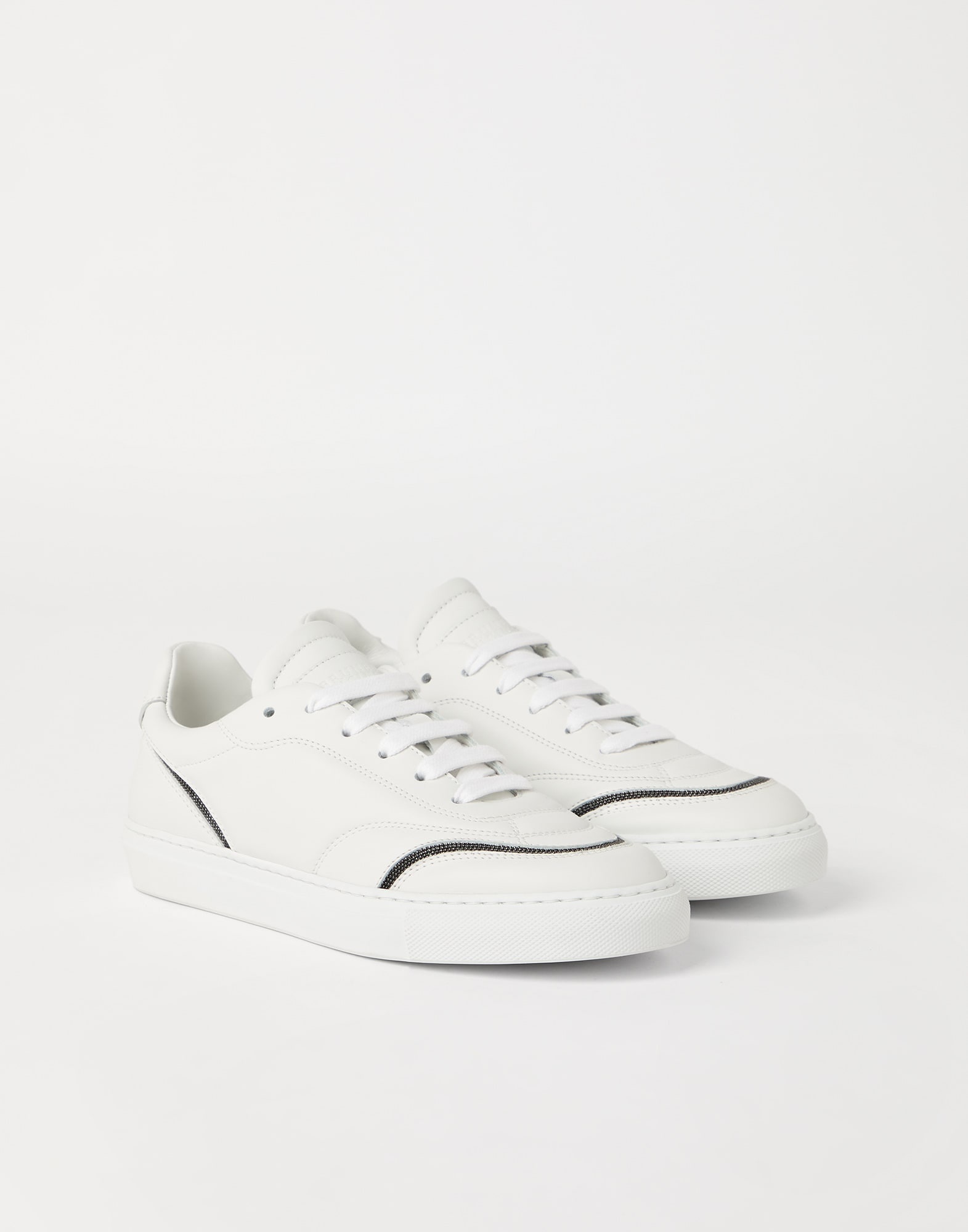 The sporty, essential allure of these sneakers is enriched with the iconic embellishment of the Brunello Cucinelli collections. Precious shiny monili inserts create an elegant sparkling effect that stands out on the refined leather’s smooth texture, shimmering delicately with every step. MATERIALS Matte calfskin delivers a smooth, soft and even texture. The leather’s matte appearance brings out the colors of the season with a rich and intense effect. DETAILS Flat cotton laces Leather lining Detachable insole TPU rubber sole TPU rubber tread Nickel-free monili decoration REAL LEATHER