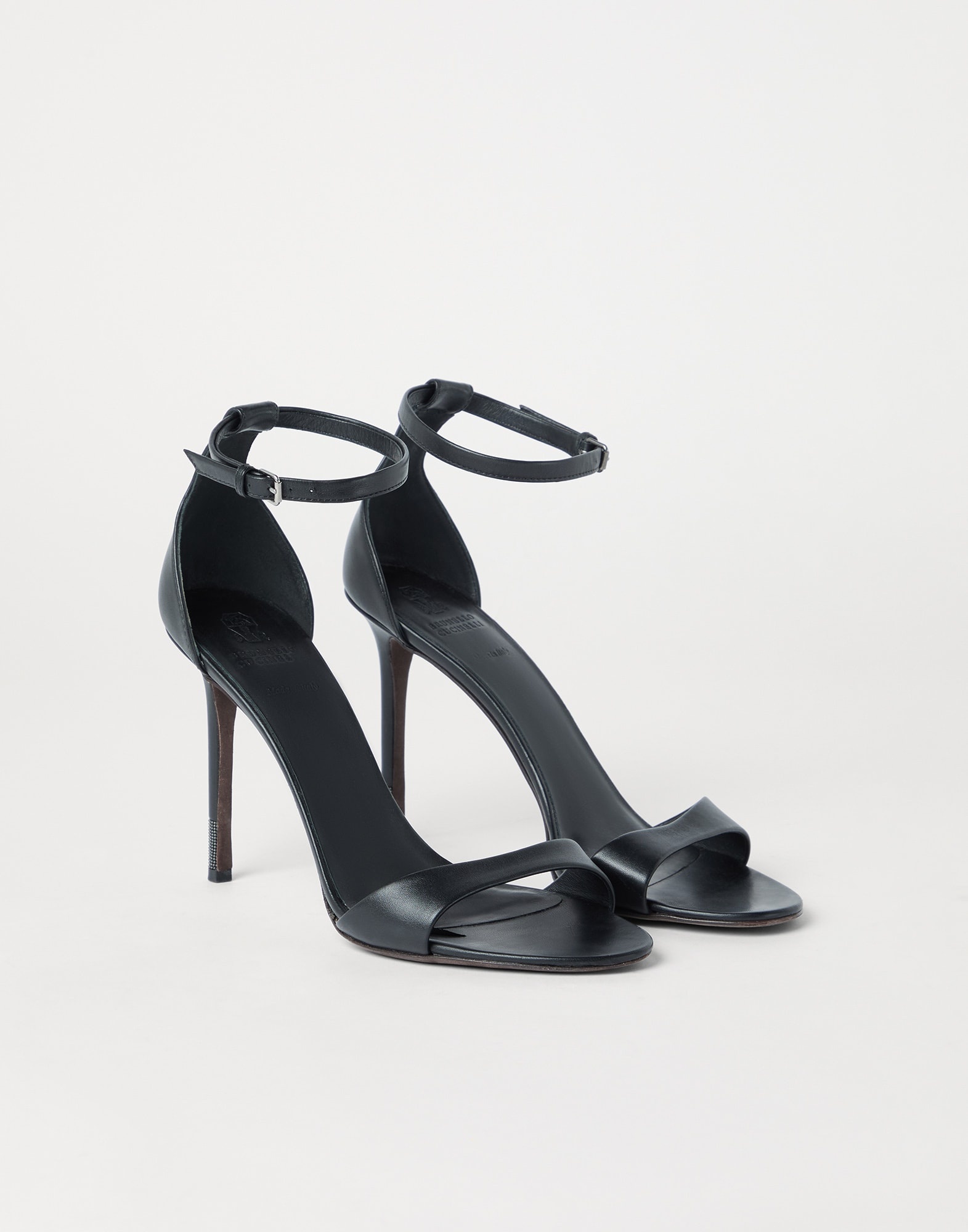 Refined materials and feminine details define the style of these new heels. The footwear’s tapered, essential lines are enriched by the special texture of soft nappa. The bottom of the heel is enriched with a shiny monili embroidery, the iconic embellishment of the Brunello Cucinelli collections. MATERIALS Nappa is characterized by a smooth, ultra-soft texture. The fine natural grain enhances the season’s colors with an intense, even effect. A leather lining ensures the footwear’s comfort. DETAILS Adjustable strap closure Leather lining Non-slip TPU rubber at heel and toe Nickel-free monili decoration 10 cm (3,94") heel 100% REAL LEATHER