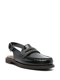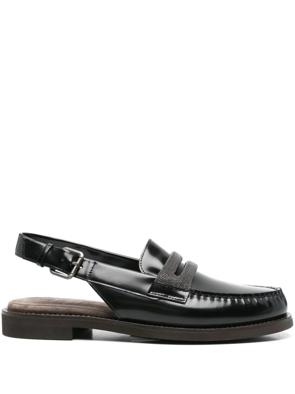 leather slingback loafers Highlights - Black - Buckle-fastening slingback strap - Low stacked heel - Branded leather insole - Signature monili chain detail Made in Italy Composition Outer: Calf Leather 100%, Eco Brass 100% Lining: Calf Suede 100% Sole: Rubber 100%