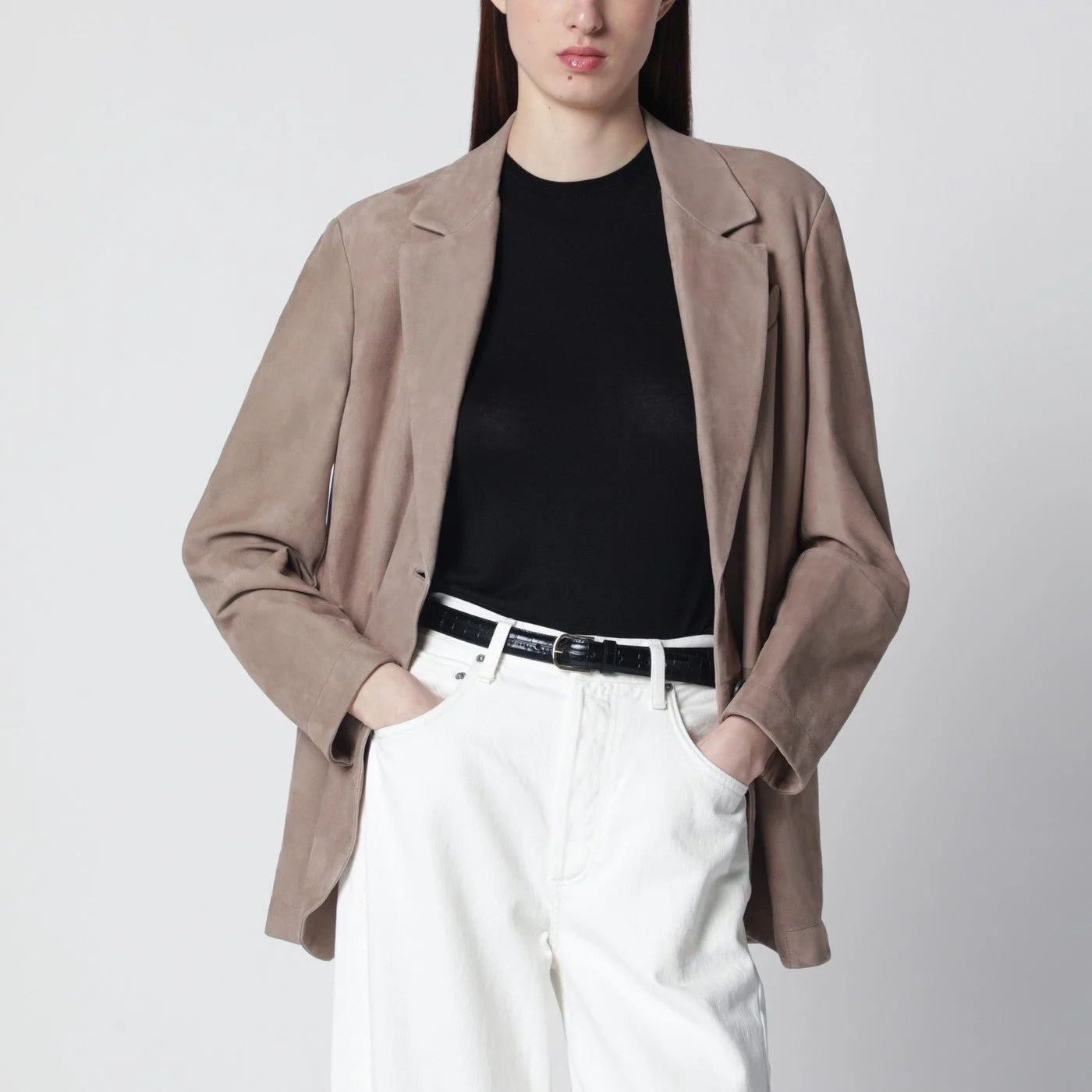 Single-breasted blazer by Brunello Cucinelli in light brown suede• Classic lapels• Front button closure• Front pockets• Long sleeves• Central back vent• Embroidered monili detail behind the neck