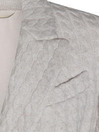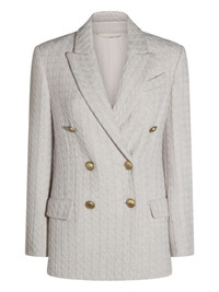 cable-knit double-breasted coat Highlights - Mother of pearl - Cable knit - Double breasted - Gold-tone buttons - Welt and flap pockets - Peaked lapel Made in Italy Composition Cashmere 100% Washing instructions Read Manufacturer Guidelines