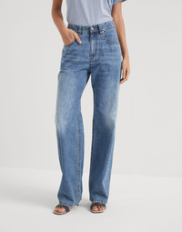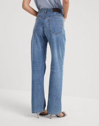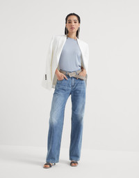 Casual styling and refined details characterize these new Authentic denim Loose trousers. The straight, relaxed and wide lines pair perfectly with the fabric’s slightly “vintage” look, characterized by faded, worn nuances. A precious monili label on the back pocket completes the garment with a sparkling, feminine note. MATERIALS Lightweight pure cotton denim uses combed threads that give the texture a light, compact and semi-glossy appearance. The dye on the fabric spreads the color with slight color shading which can evolve with regular use and washing, a luxurious trait that makes each style unique. DETAILS Zip closure with button Front pockets Back patch pockets Nickel-free monili decoration 100% COTTON