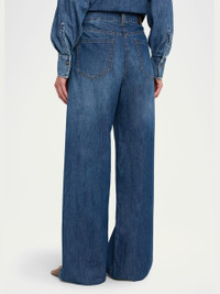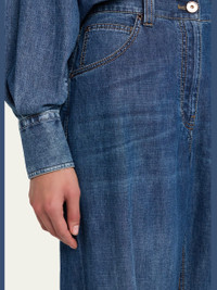 Brunello Cucinelli pants are crafted of super lightweight denim with a slightly faded and whiskered mediumwash High rise Fivepocket style Monili trimmed belt loop on the back Wide legs Full length Button/zip fly; belt loops Cotton/leather Dry clean Made in Italy