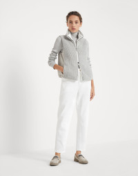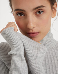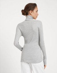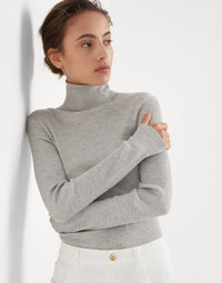 Lightweight turtleneck sweater in sparkling cashmere and silk rib knit