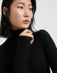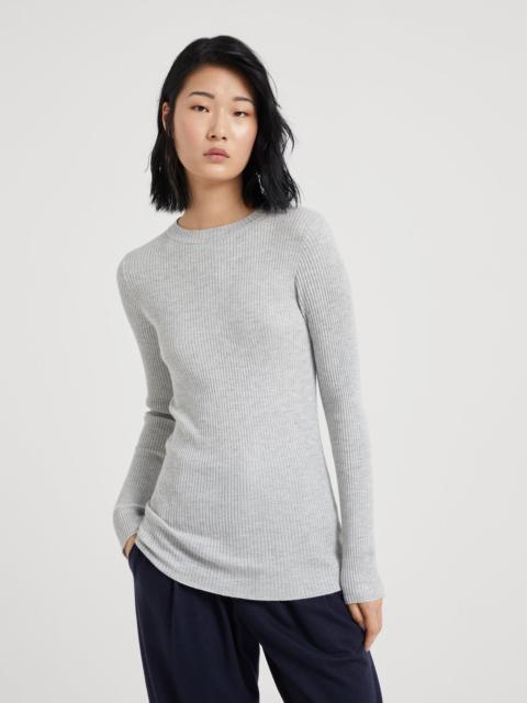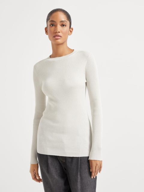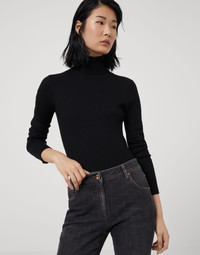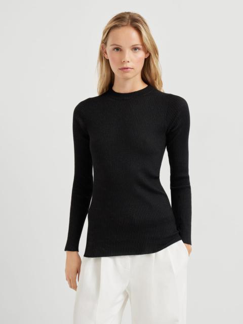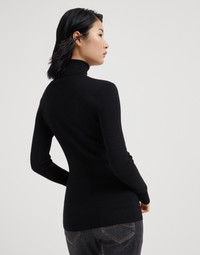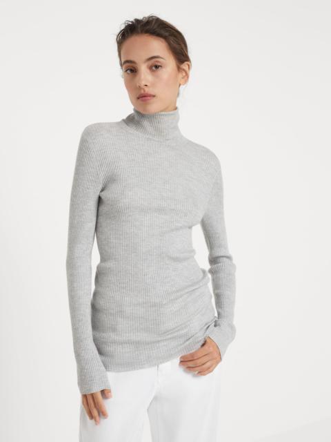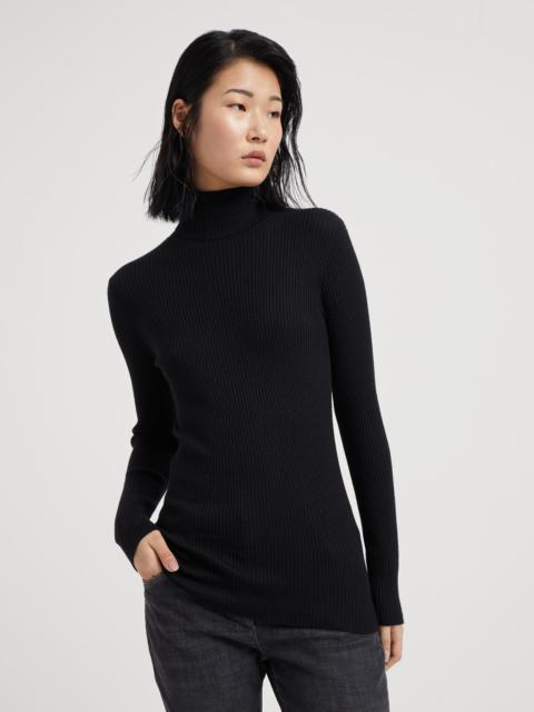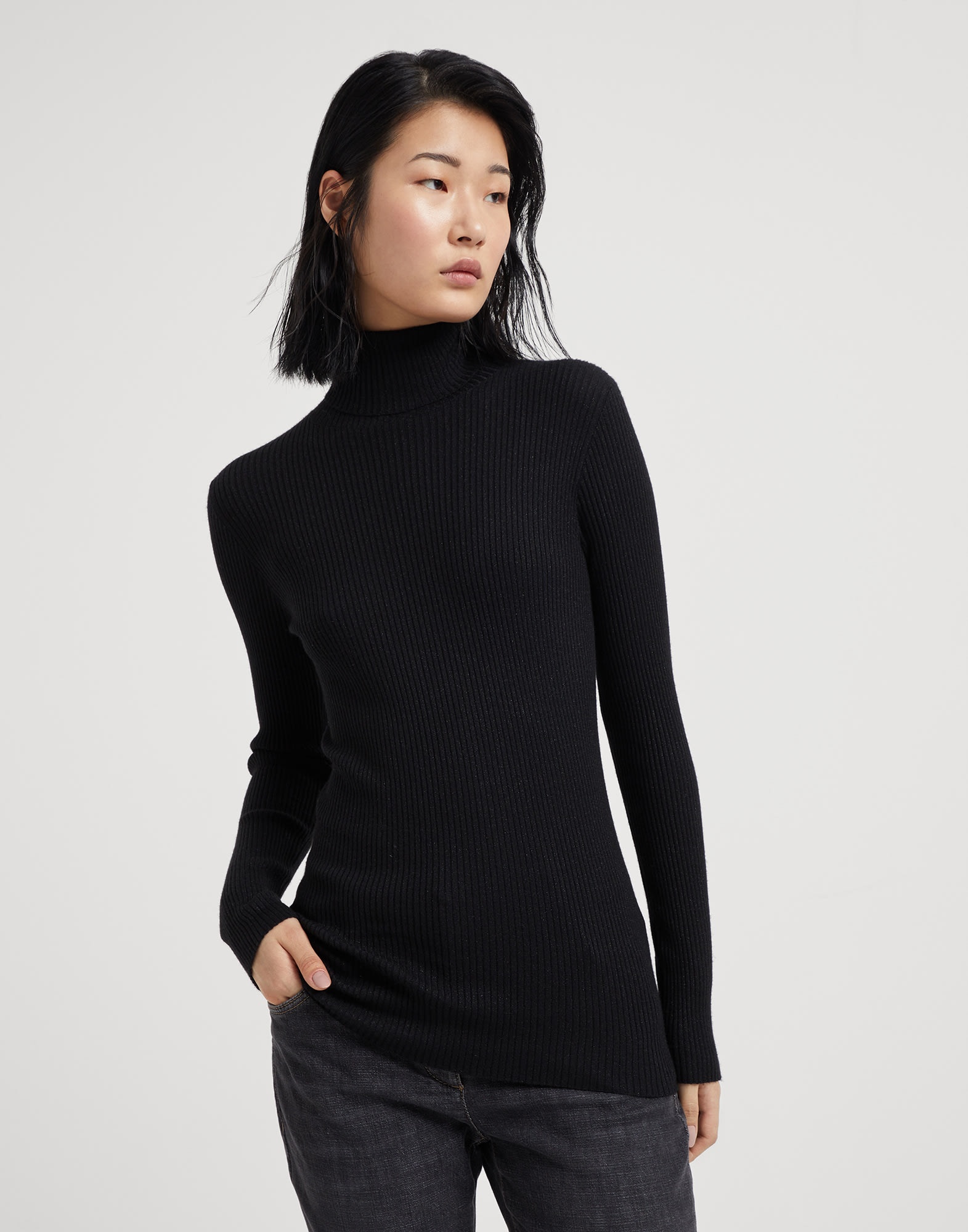 Lightweight turtleneck sweater in sparkling cashmere and silk rib knit