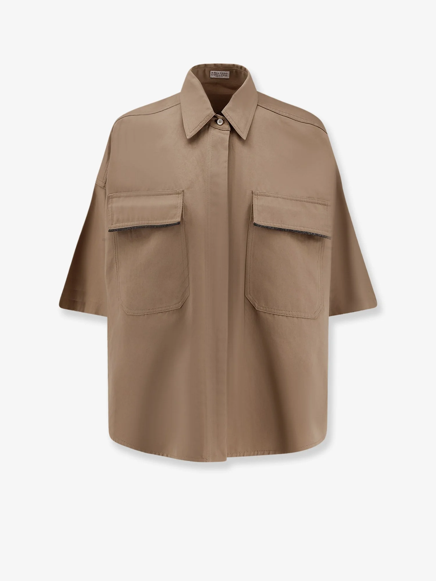 - Made in: ITALIA - Classic collar - Hidden button closure - Short sleeves - Frontal Monili detail - Made in Italy - 69% Cotton, 31% Linen - SKU: ML597EM906C631
