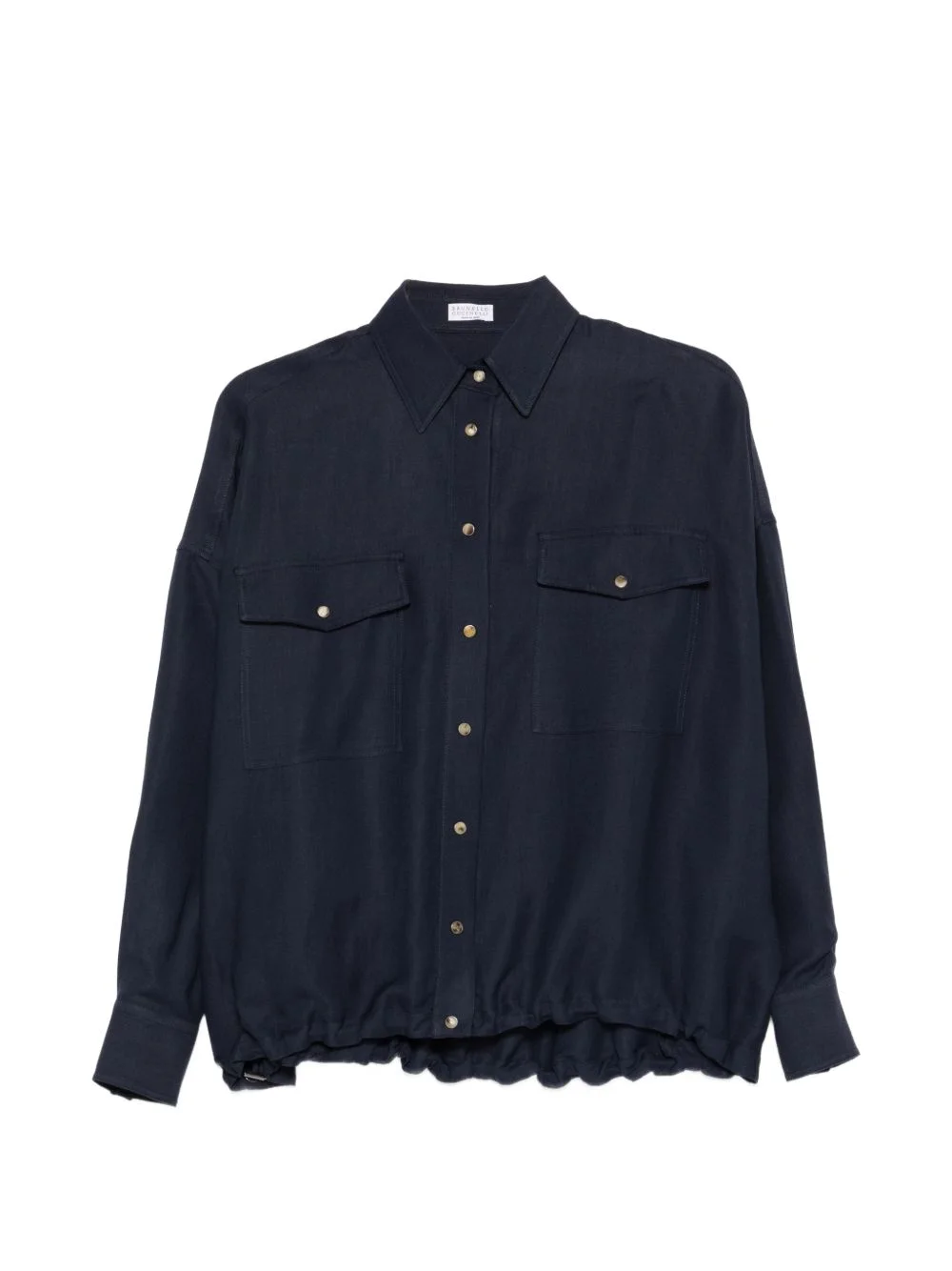chest-pocket elasticated-hem shirt Highlights - Blue - Front button fastening - Two front patch pockets - Elasticated hem - Buttoned cuffs Made in Italy Composition Acetate 74%, Viscose 72%, Linen/Flax 28%, Silk 26% Washing instructions Dry Clean Only