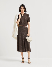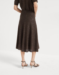 Precious workmanship elevates the classic feel of Brunello Cucinelli knitwear. This Dazzling Texture knit skirt is crafted with a classic stockinette stitch, but used in reverse to enhance the special knitted texture and to accentuate the sparkling effect of the paillettes. A silk-blend crepe lining completes the garment and provides added comfort. MATERIALS Special knitting enhances the linen, cashmere and silk yarn incorporating densely interspersed pailettes. DETAILS Pull-up skirt Silk-blend crepe lining 60% LINEN, 28% CASHMERE, 12% SILK